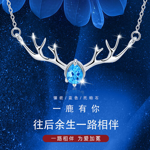 镶嵌的蓝色托帕石,使用的是明亮式切割工艺,耀眼夺目,尽显气质与优雅,延长链的设计,可满足不同长度的需求。