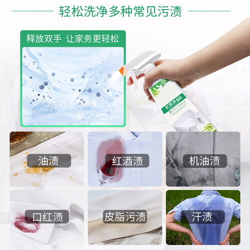 喷雾式设计,一喷即可,可避免搓洗衣物,能有效呵护你的娇嫩肌肤;采用强渗透配方,清洁去污的同时,可有效保护衣物纤维不损坏。