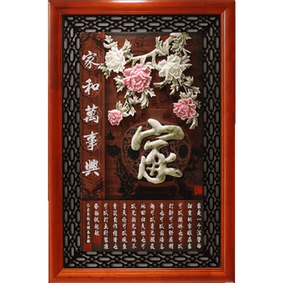 以家为主题,呈现出3D立体浮雕质感,从色彩、元素等各方面,处处呈现家和万事兴;手工雕刻工艺,高贵优雅,充满活力。