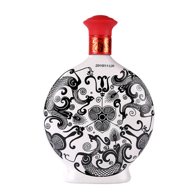 采用水、高粱、小麦等为原料制作,选取多种配料,酿造出高品质的好酒。结合汉代扁凤图案,现代与古代酒文化融合,展现悠久历史。