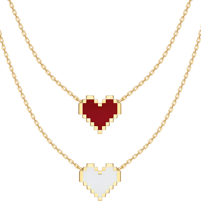 爱心边缘有像素格子修饰,色彩对比更为鲜明,凸显别具一格的设计,更显复古时髦。搭载灵动星球,增添律动美感。
