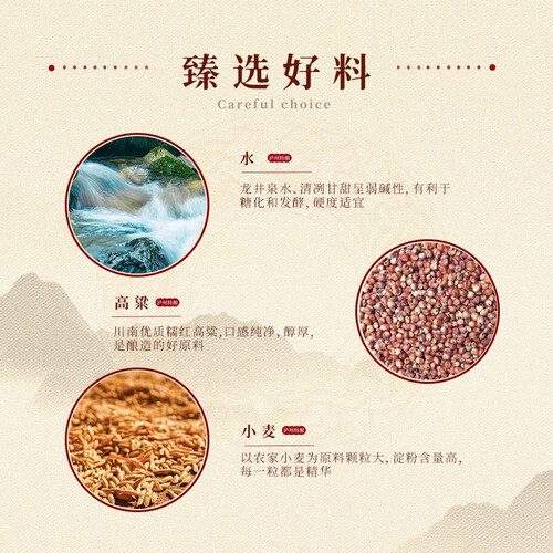 采用优质小麦,高粱等原粮酿造而成,保留了谷物自然气息,香气芬芳。酿造过程中拒绝任何有害化学物质添加,拥有更纯粹的口感。