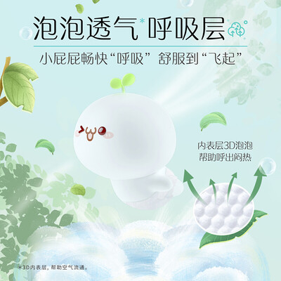 采用蓬松云柔面层,边缘没有皮筋,丝滑立体护围,宝宝随心翻滚,柔滑不易摩擦。尿液迅速传导,快速吸收保持干爽。