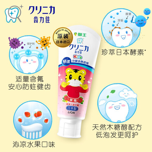 选用酵素配方,有效去除牙缝和牙齿表面的污渍,预防牙结石产生。适量含氟搭配木糖醇成分,呵护牙龈健康。