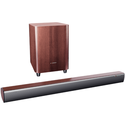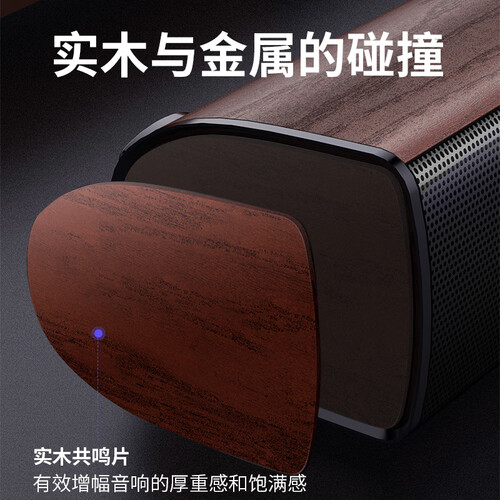 时尚外观设计,令这款设备看上去更显高端大气,同时采用实木共鸣片设计,能够有效增强声音的厚重感。