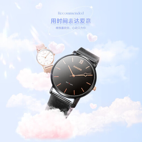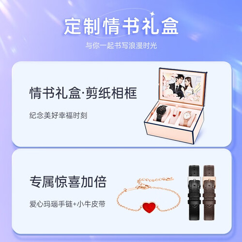 分针与秒针60s重合,爱心形状表达彼此的一见钟情。时间见证真爱,助攻甜蜜告白成功。搭配爱心手链和牛皮表带,日常换装无忧。