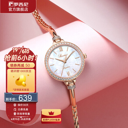 满天星表盘搭配闪耀的水钻表圈,洋溢着浓浓的浪漫气息,打造唯美视觉感。纤细的手镯式表带,轻松烘托出你的纤纤玉手。