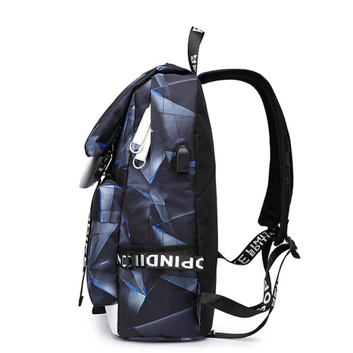 炫酷几何图案,颇具未来科技感。高密度牛津布制作,防水抗撕裂,呵护包内物品。外置USB充电接口,方便实用。
