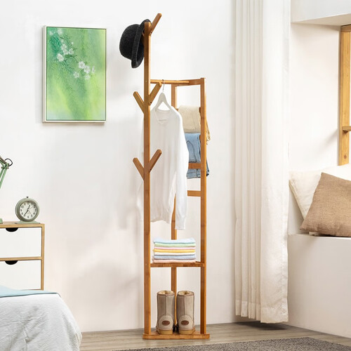 采用整竹压制,稳固不易断,结实耐用。方形加厚底座稳重不摇晃,多层的树杈设计满足多种收纳需求。
