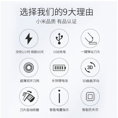 采用了超薄双环刀网设计,能够大大的增加刀网与面部接触面积,剃须效率双倍提升,切剃胡须更彻底。