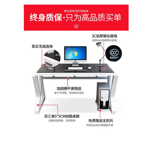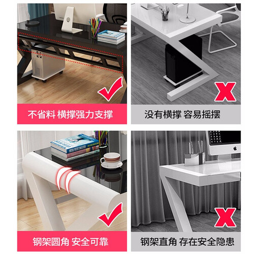桌面采用钢化玻璃制成,坚固且不易碎,增强视觉美感,同时桌角采用圆边设计,可有效防止磕碰,使用更安全。