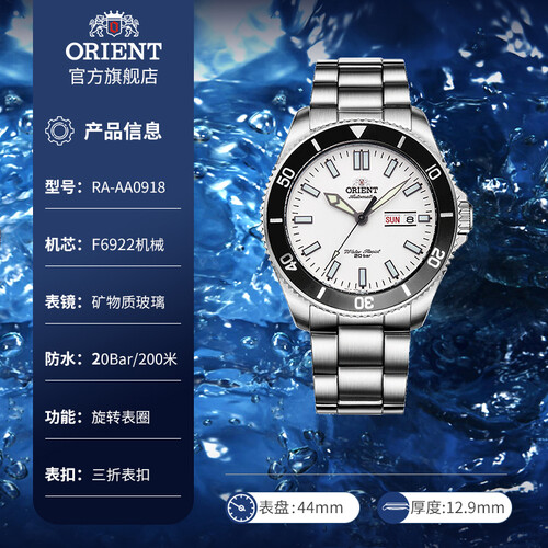 两百米深度防水,合成蓝宝石表镜坚固防刮伤防磨损,储能型夜光功能吸收光源后可释放强势夜光,夜晚也能看清。
