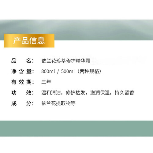 添加依兰花提取物,能够为秀发补充水分,调节头皮水油平衡,从根部强韧发丝。采用膏体设计,触感细腻,补水不油腻。