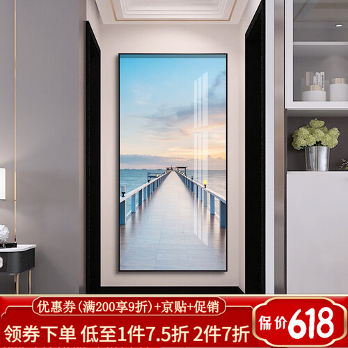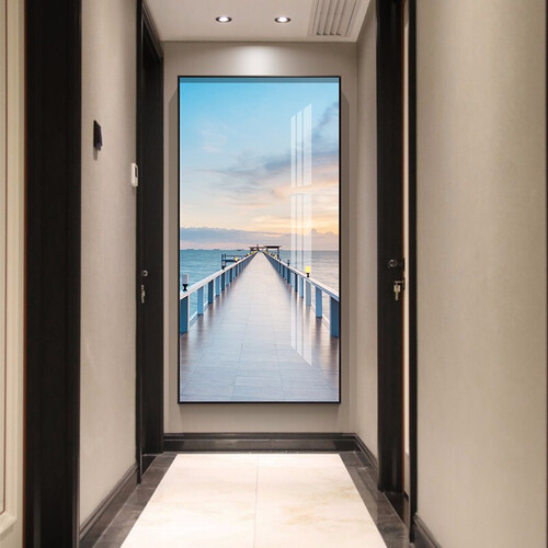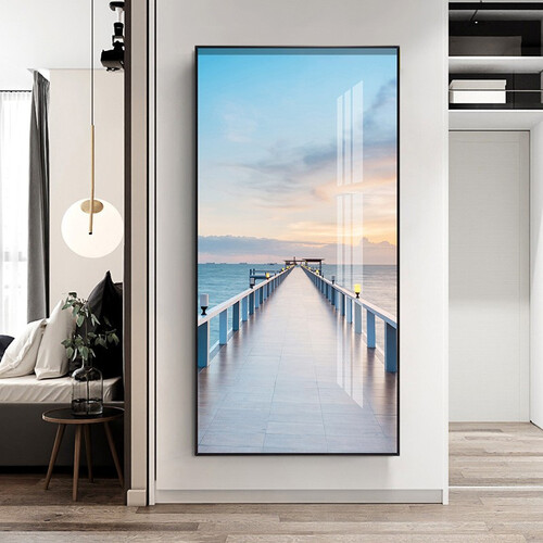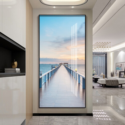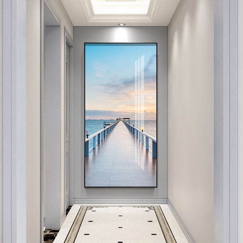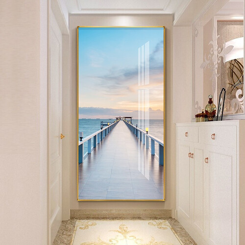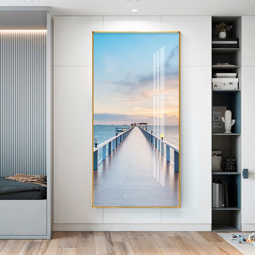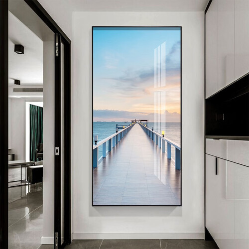装饰画选用加厚油画布,上色均匀,竖屏海景图案,放在玄关更加美观。金属边框,表面充满光泽感,触感舒适,久用不易磨损。
