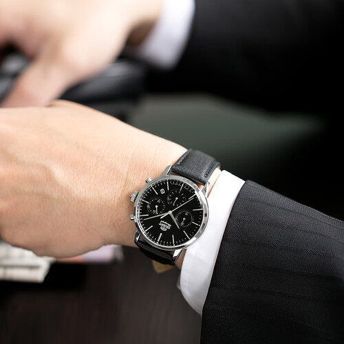 表盘内置三个独立小表盘,可以进行运动计时,方便喜欢爱运动的人群。矿物质玻璃表镜,防刮耐磨,持久使用依然如新。