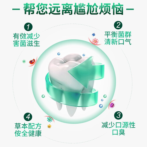 采用草本植物萃取成分设计,可以解决口臭问题,让口齿留香无异味。配合细腻的泡沫,更好的呵护口腔健康。