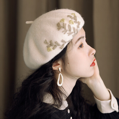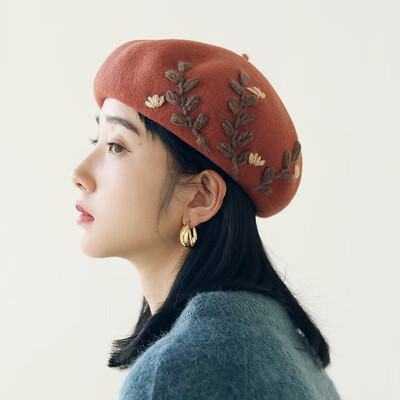 MISMEMO 小花刺绣贝雷帽