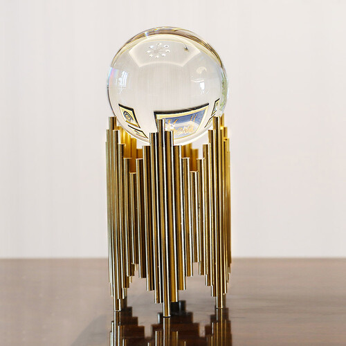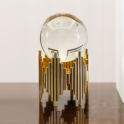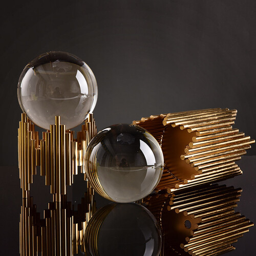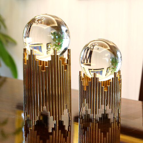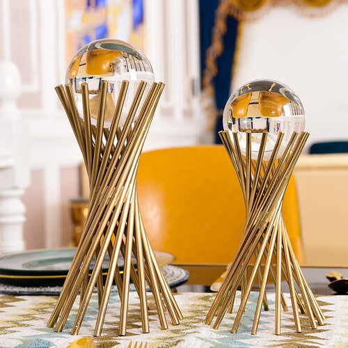 光亮质感金属底座结合上通透水晶球,整体外观大气、富有美感,适合用于装点欧式、美式、新古典风格装修。