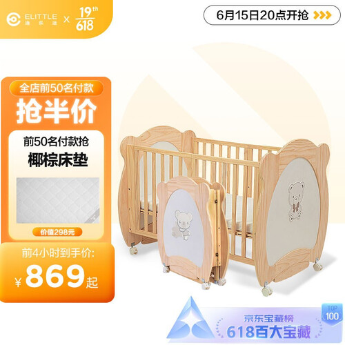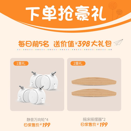 床身加入卡通图案,俏皮可爱,增添些许乐趣。去掉万向轮,还可变身摇篮床,人体工学设计的弧度,满足多样化需求。