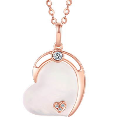 浪漫可爱的心形吊坠,融合母贝钻石和K金材质,彰显品牌的工艺时尚。搭配简单的链条设计,修饰锁骨线条,凸显女性魅力。