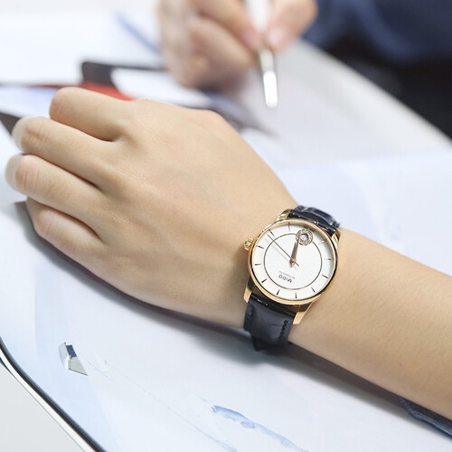 甄选高品质皮革材料制作的表带,质地细腻且柔韧性佳,佩戴感更为舒适。采用折叠扣闭合方式,链接牢固更紧密。