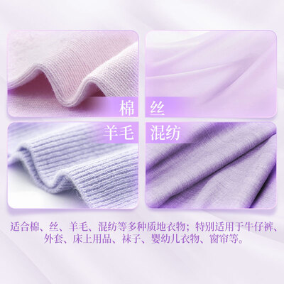 紫色外观设计,棕榈油温和护理,穿着衣物舒适柔软,植物活性成分,蓬松透气。