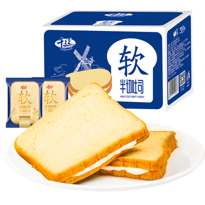 半切软吐司面包,厚度均匀。每一片都完整美观,不易松散,值得信赖。
