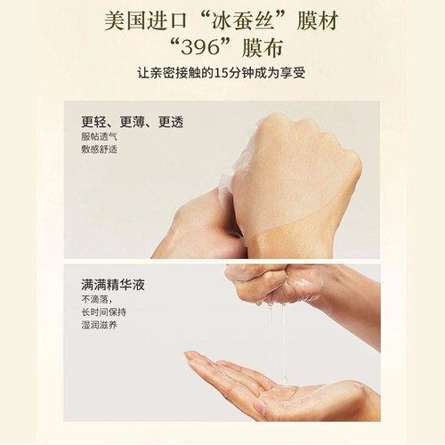 采用美国进口冰蚕丝面膜,具有更轻、更薄、更透的特点,带来更加舒适的敷感。精华液丰富,为肌肤带来长时间滋润。
