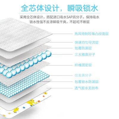 无添加荧光剂等物质,宝宝穿着无负担,不易过敏。全采用高柔软度材质,呵护宝宝娇嫩肌肤,干爽透气。全芯体设计,瞬吸锁住水分。