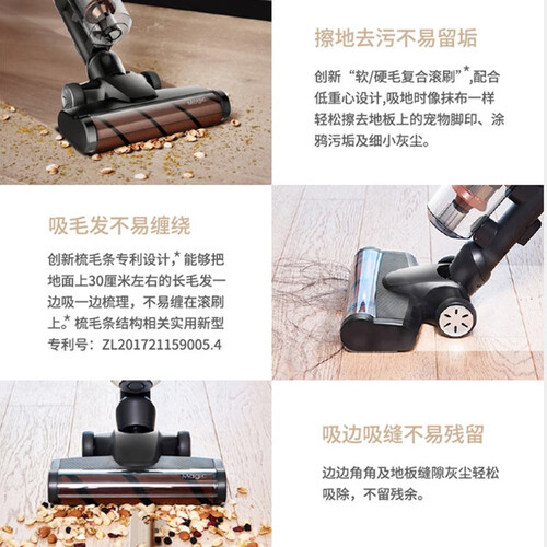 搭载数码电机,既拥有强劲吸力,又带来长久续航时间;选用软绒的材质,可抛光养护地面;创新梳毛条结构,能够防止缠绕。