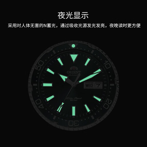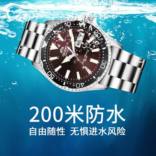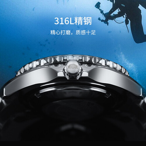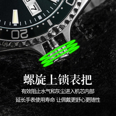 200米深度防水功能可轻松应对游泳、潜水等运动需求,逆时针旋转表圈设计方便计算潜水时间,嵌入式表冠带来双重保障。