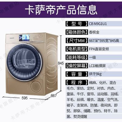 搭载LCD彩屏触控面板,人机交互更智能,辅助灵活操作。多种烘干程序选择,满足羊毛和真丝面料烘干,方便家居使用。
