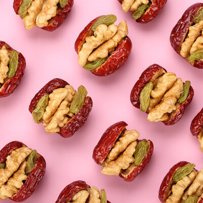 精选新鲜灰枣和核桃仁,色泽鲜美诱人,红枣皮薄肉厚,散发着浓郁自然的枣香,融合核桃的酥脆口感,好吃又过瘾,享受营养美味。