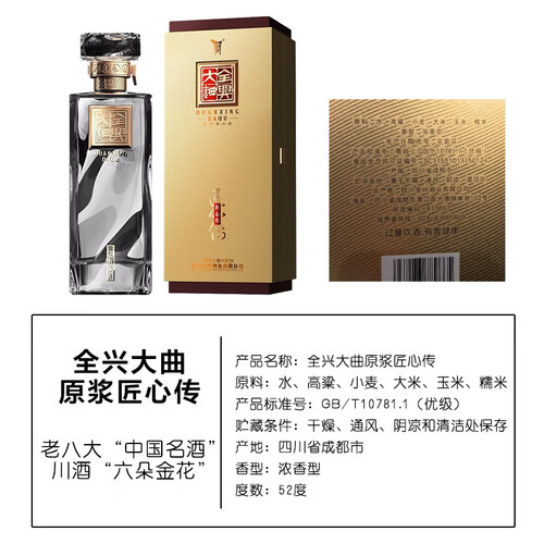 全兴大曲原浆匠心传酒,秉承百年工艺,甜润爽净,和润生香。90天超长发酵醇化充沛,坚守600年古法制曲,赋予酒体风度香味。