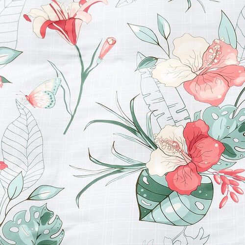 饱满大气的花卉与火烈鸟图案铺满表面,富有盎然生机,明快活泼,让人心情舒畅。甄选优质纯棉面料,透气舒适,久睡不觉闷热。