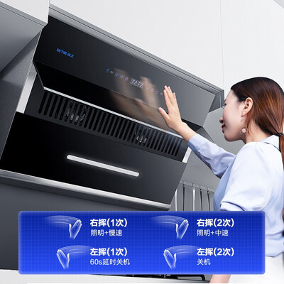 双电机设计动力澎湃低噪节能,高效吸油烟同时更安静。可通过体感操作,无需触碰油污,烹饪干净卫生。