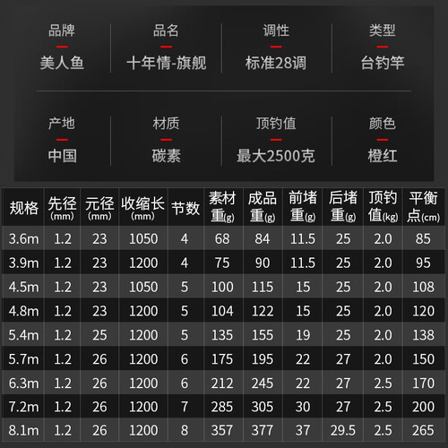 美人鱼 高硬度台钓竿