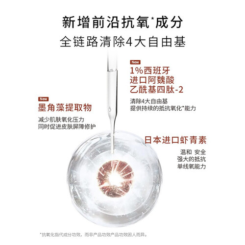 蕴含脱羧肌肽、虾青素和肌醇等成分,营养丰富。调节水油平衡,焕活提亮肌肤。