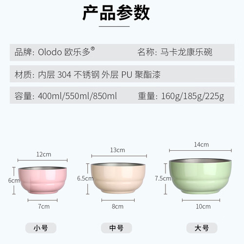 马卡龙彩色外观,甜美可爱,采用双层中空防烫技术,并且碗体与碗底均采用螺纹防滑设计,端拿舒适防烫伤。