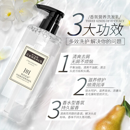 含有平衡油脂成分,洗后发丝清爽不油腻,有效清洁头皮污垢和头皮屑。清爽的香味持久留香,洗发后能够增加自信感。