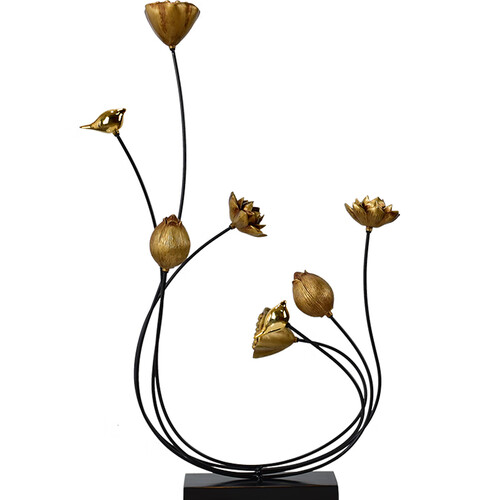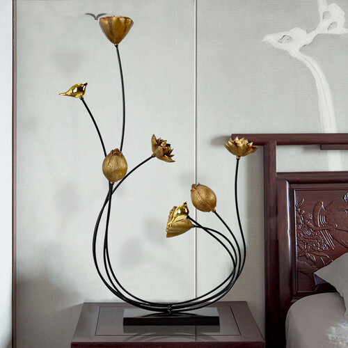 冰石美的这款创意摆件,设计应用了喜鹊、莲花,莲蓬结合使得整体更端庄典雅,增添了视觉上的轻巧感。