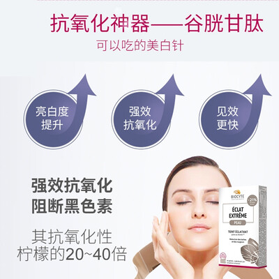 主要成分是谷胱甘肽和高浓度的植物萃取独特成分,两种成分协同作用,人体更好吸收;盒装片剂,形态较小,一次一片好吞咽。