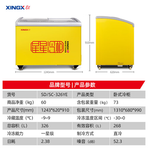 星星 大冷冻力顶开门冷柜