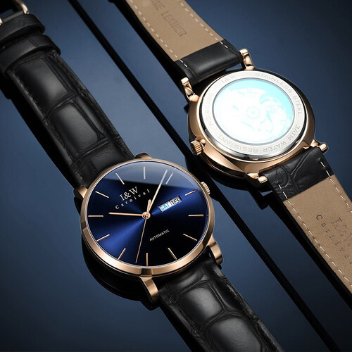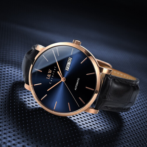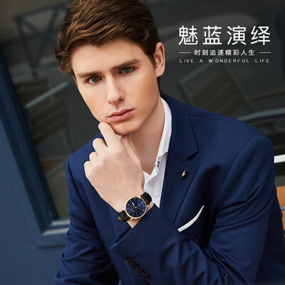 深邃蓝色的盘面,搭配黑色皮质表带,呈现竹节纹的纹理,更具时尚质感,佩戴亲肤透气,彰显你的绅士儒雅气质。