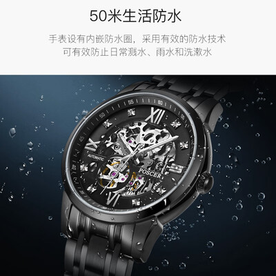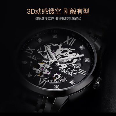 缕空表盘,让热爱机械的男士时刻感受机械律动之美。纯黑色设计,大气简约,时尚百搭,很适合年轻男士佩戴。