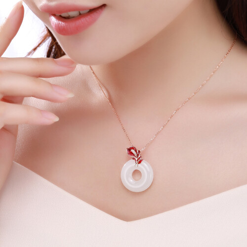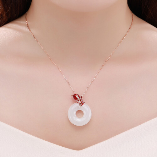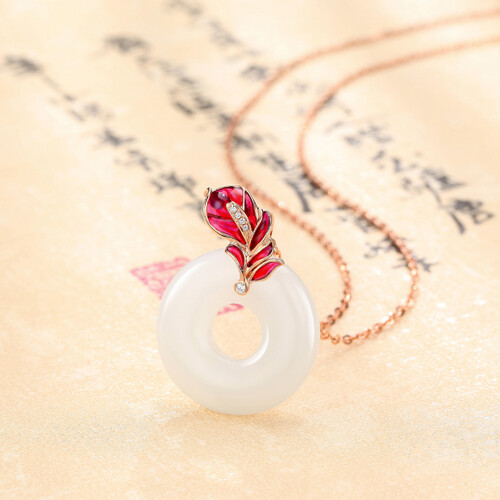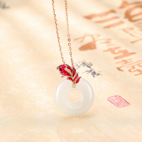 细腻的和田玉,手感温润平滑,带来舒适的佩戴体验。K金材质的叶子造型,精美别致,凸显独特的优雅魅力。
