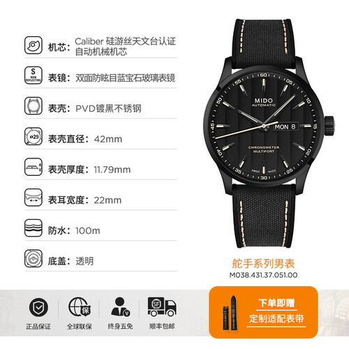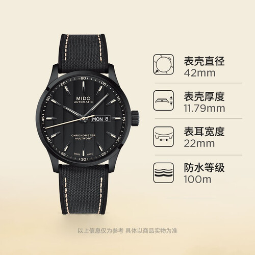 这款美度自动机械瑞表,具有100米的生活防水性能,无惧水花,日常洗手洗脸无需反复佩戴。
