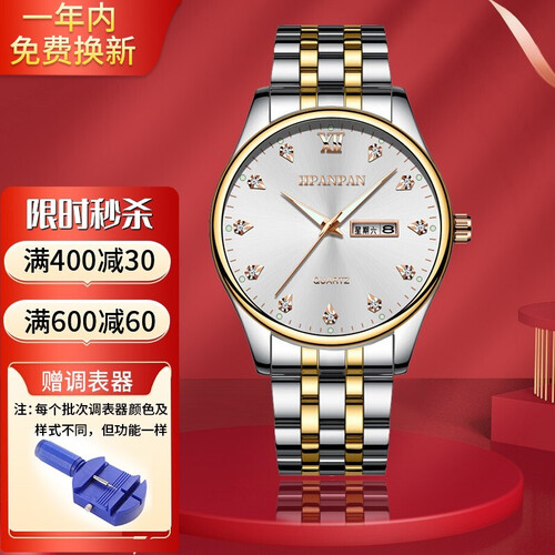 表壳金色的格调夺人眼球,不经意间展现出潮流大气的模样。内部镶嵌捷克水钻,整体显得璀璨闪耀很抢眼。