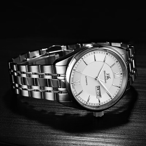 表带选用精钢打造,质地坚硬耐刮划,持久闪耀温润光泽。采用简约大三针设计,读时一目了然,满足你的需求。