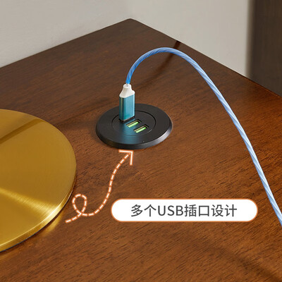 采用桌侧铜质挂钩设计,贴心设计,让您使用更方便。内置多个USB插口,人性化设计,让您可随时随心充电。